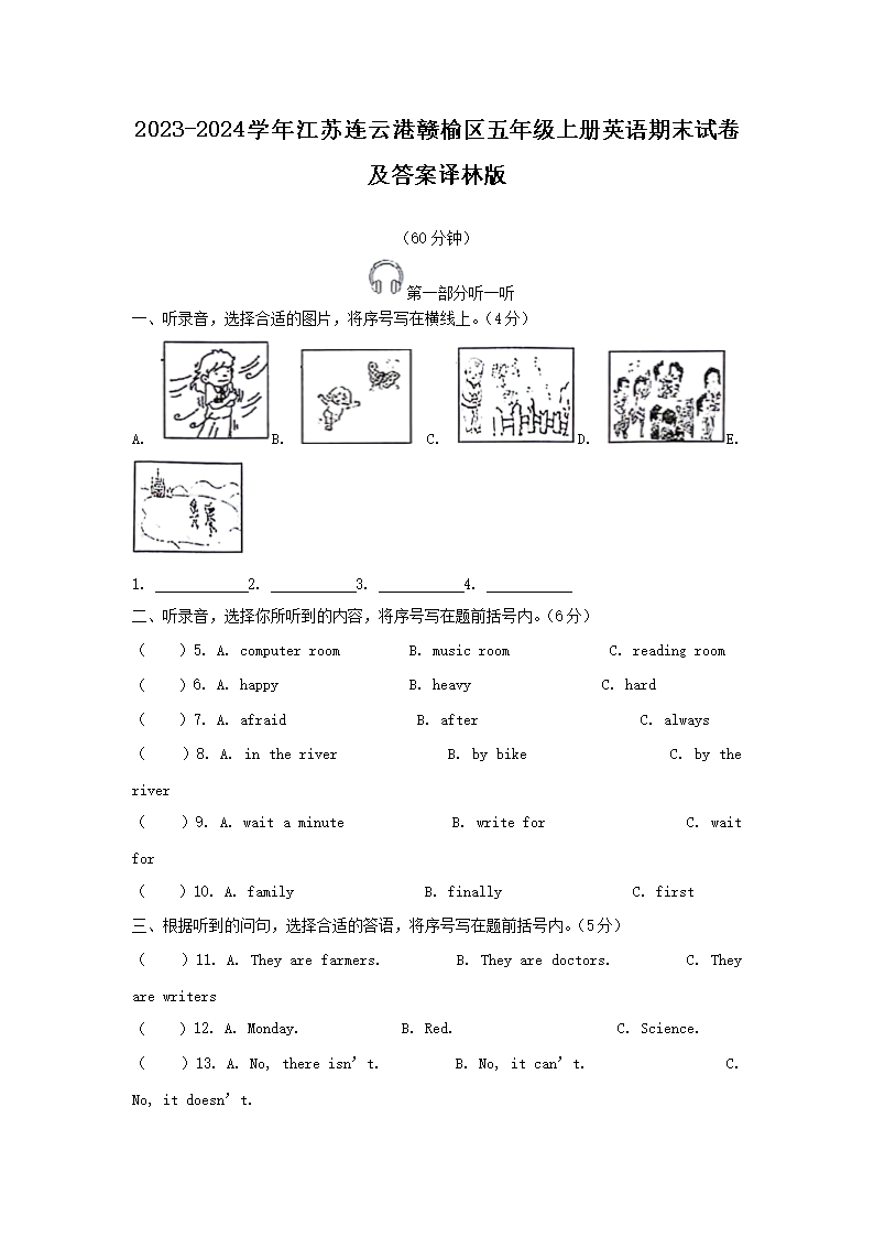 時(shí)間:2025-02-26 17:40:00 來源:無憂考網(wǎng) [字體:小 中 大]【文檔名稱】 2023-2024學(xué)年江蘇連云港贛榆區(qū)五年級(jí)上冊(cè)英語期末試卷及答案譯林版(Word版).doc