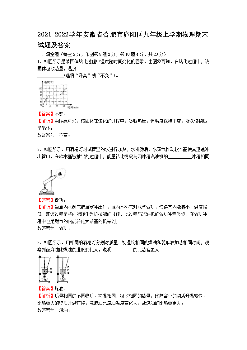【文檔預(yù)覽】 無憂考網(wǎng)整理發(fā)布2021-2022學(xué)年安徽省合肥市廬陽區(qū)九年級上學(xué)期物理期末試題及答案(Word版),前五頁預(yù)覽如下: