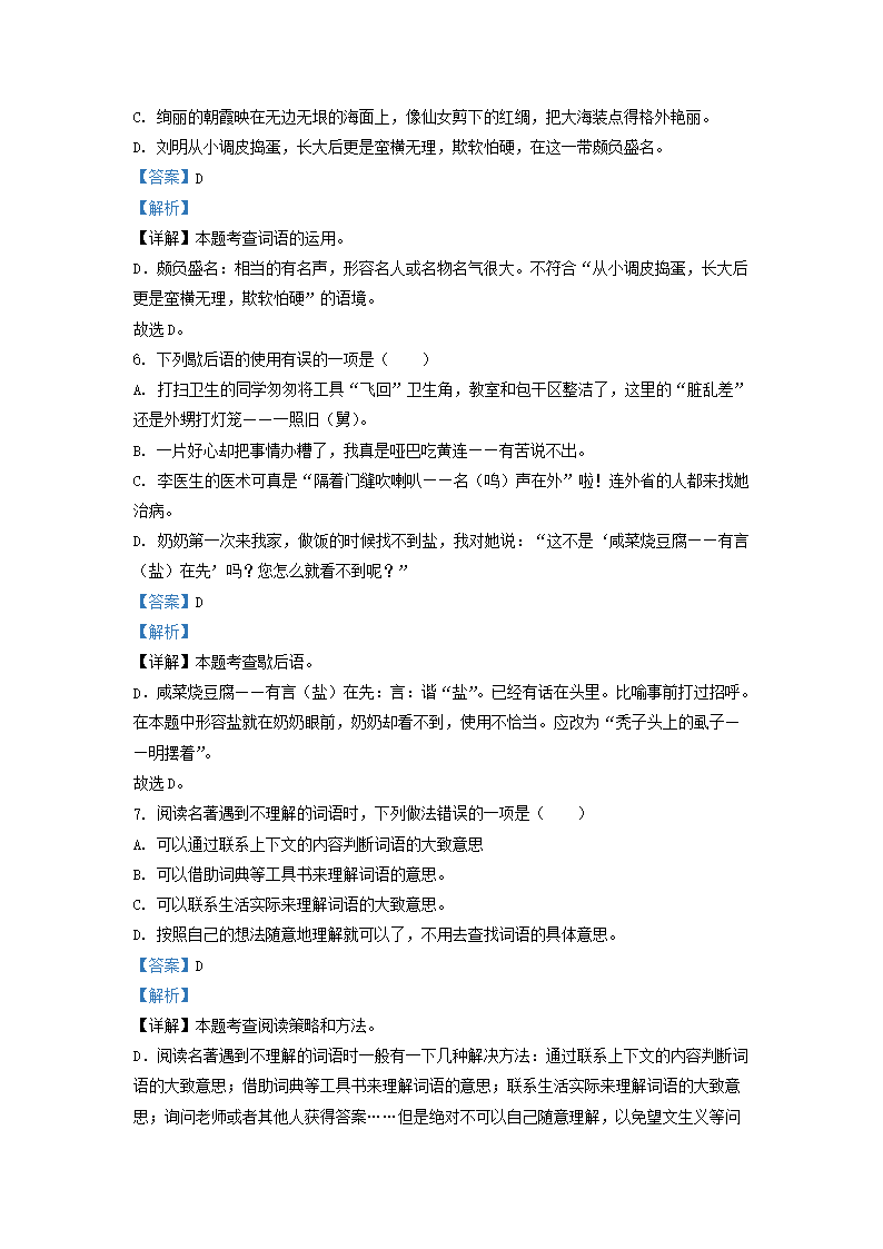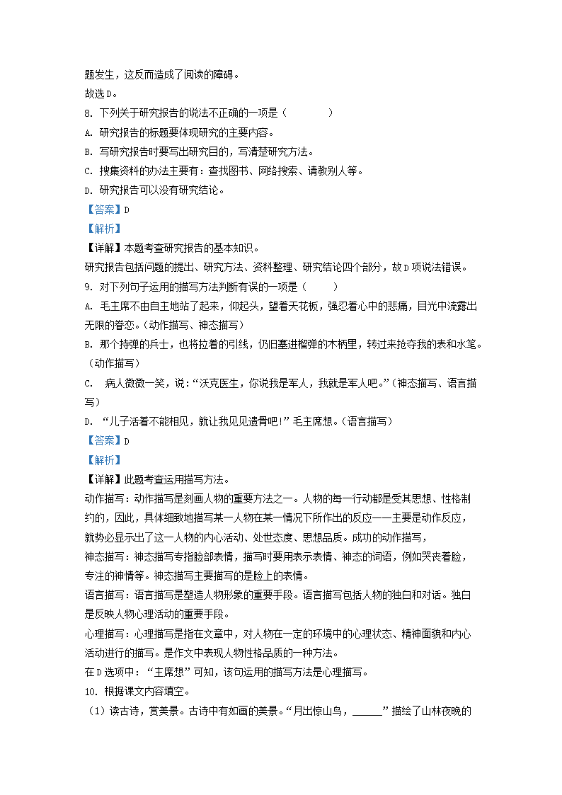 - 2023-2024學年江蘇常州天寧區(qū)五年級下冊語文期末試卷及答案