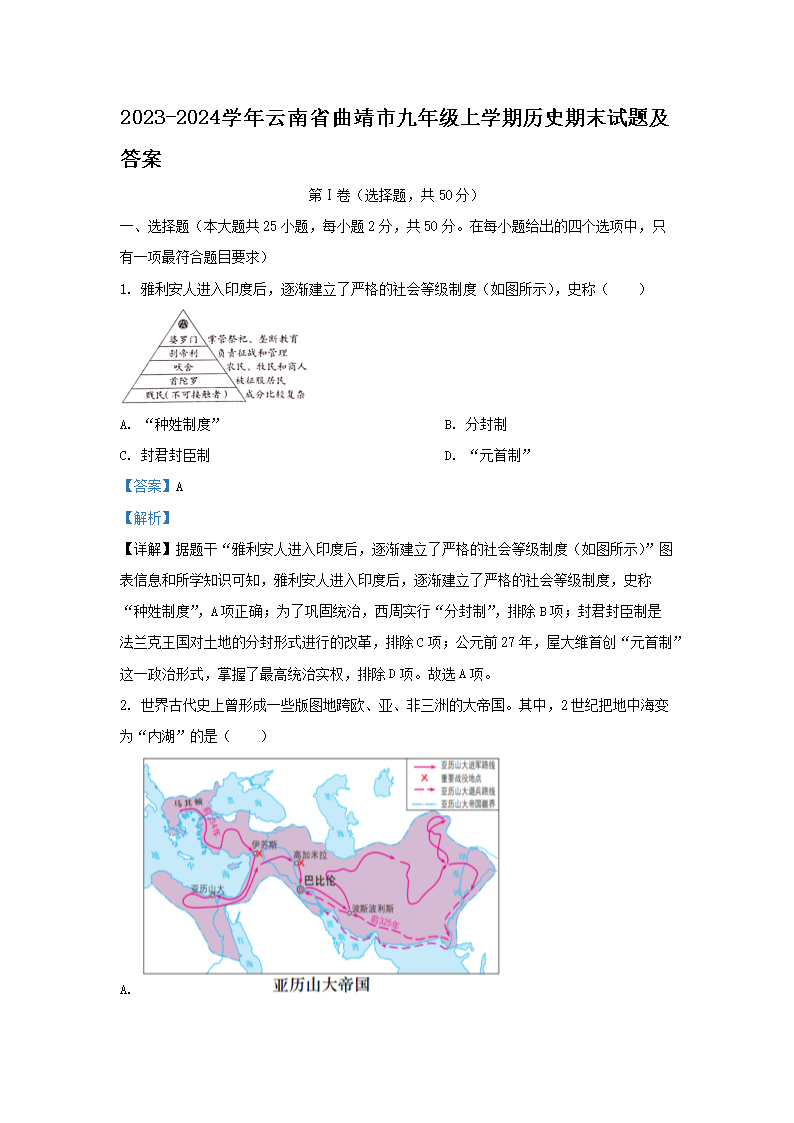 2023-2024學(xué)年云南省曲靖市九年級(jí)上學(xué)期歷史期末試題及答案(Word版)