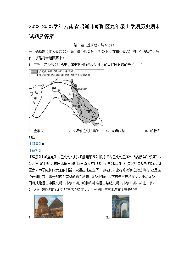 【文檔預(yù)覽】 無憂考網(wǎng)整理發(fā)布2022-2023學(xué)年云南省昭通市昭陽區(qū)九年級(jí)上學(xué)期歷史期末試題及答案(Word版),前五頁預(yù)覽如下: