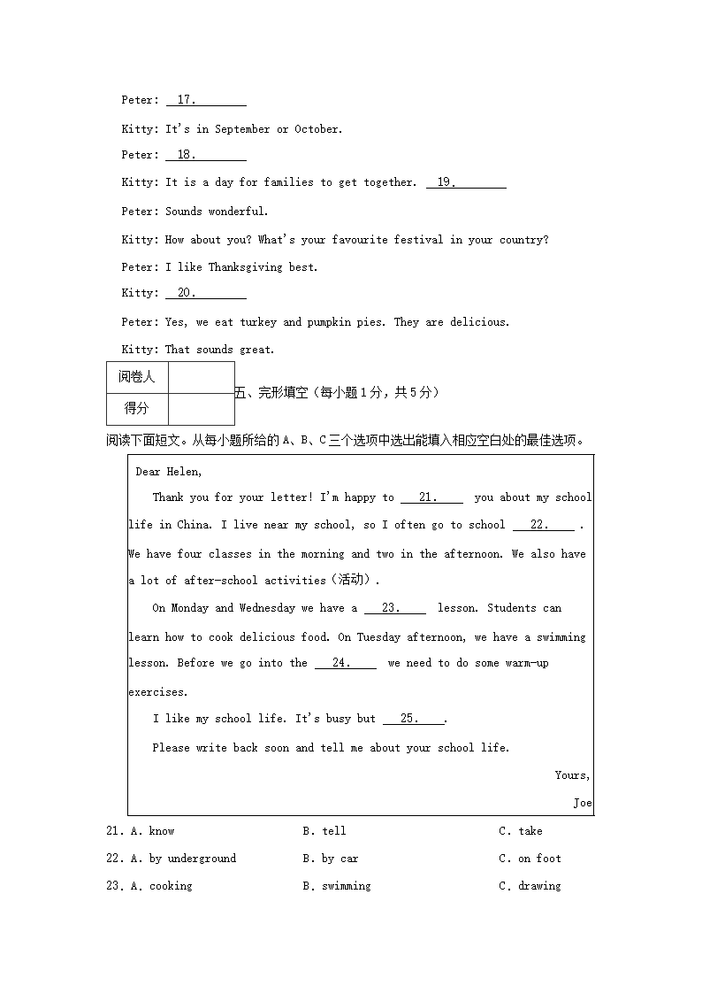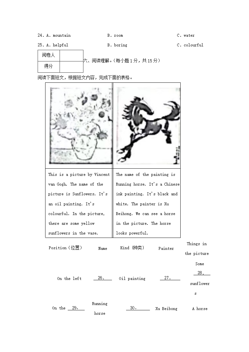 - 2022-2023年廣東省汕尾市海豐縣附城鎮(zhèn)六年級(jí)下冊(cè)5月月考英語(yǔ)試卷及答案