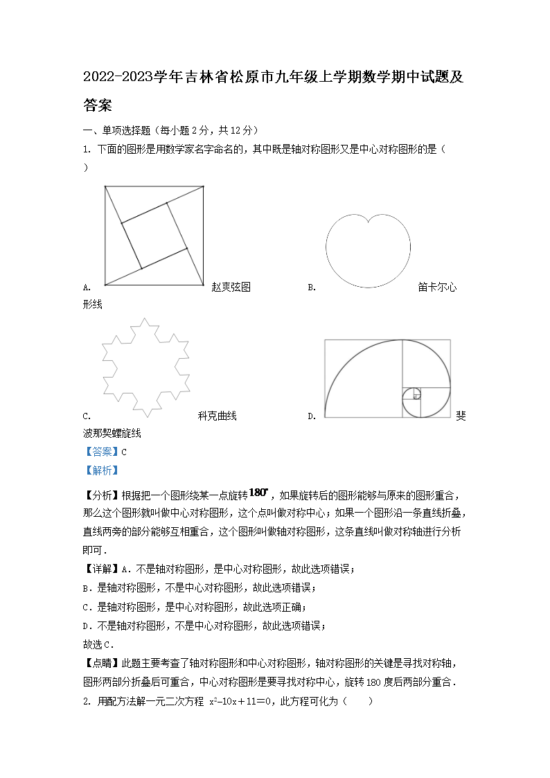 【文檔名稱】 2022-2023學年吉林省松原市九年級上學期數學期中試題及答案(Word版).doc