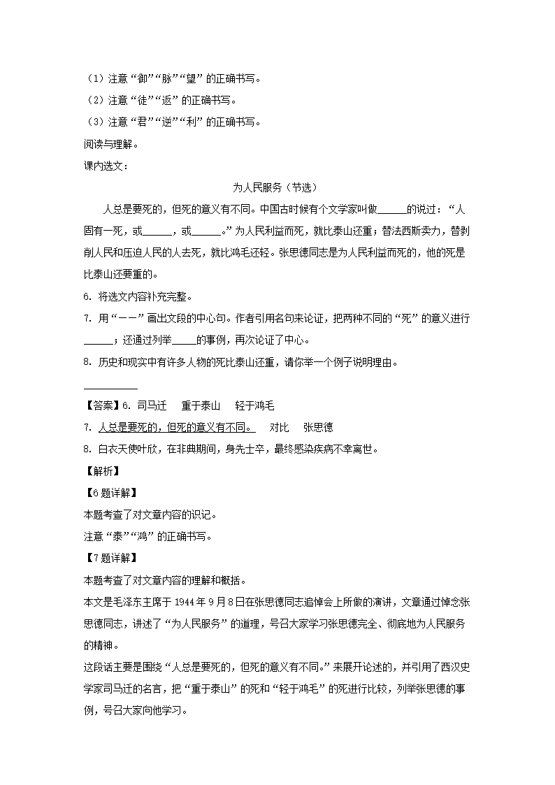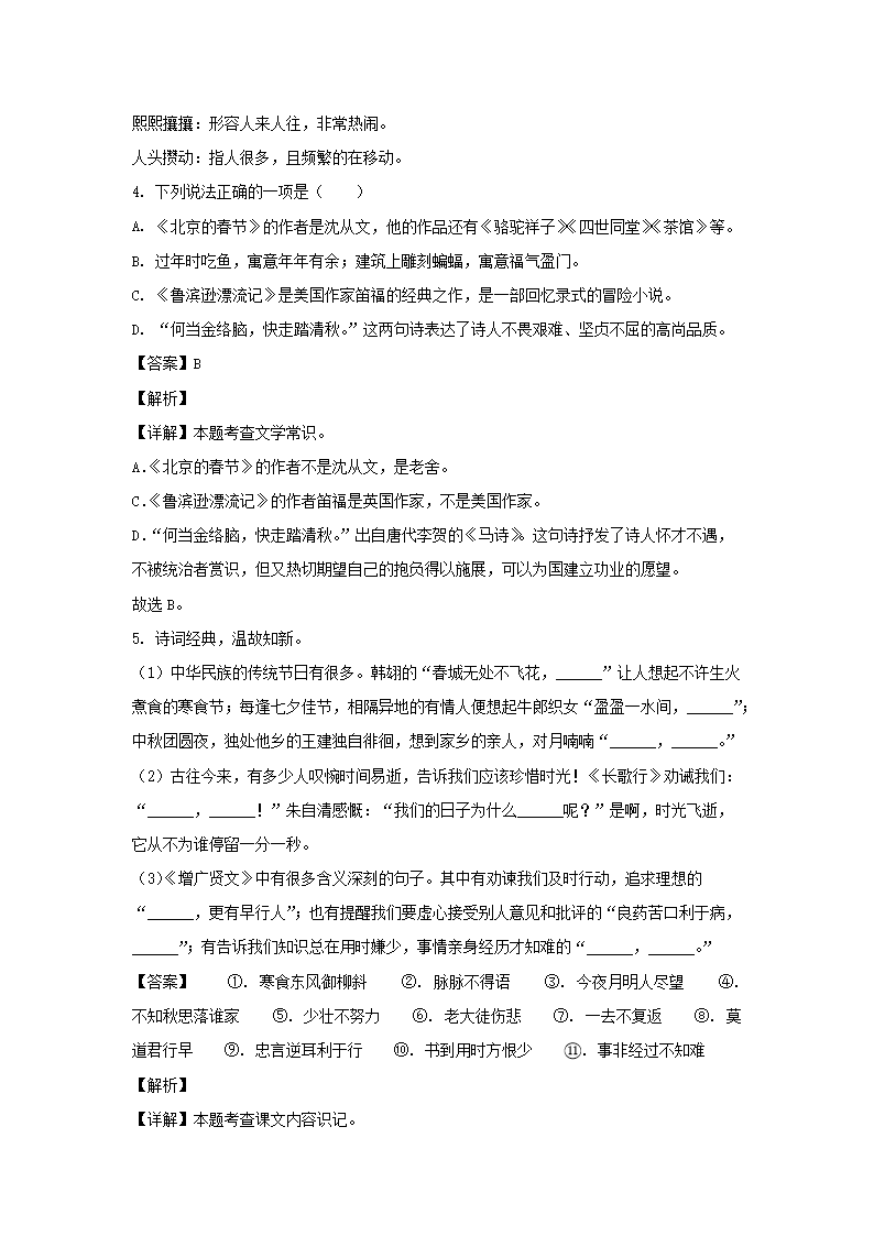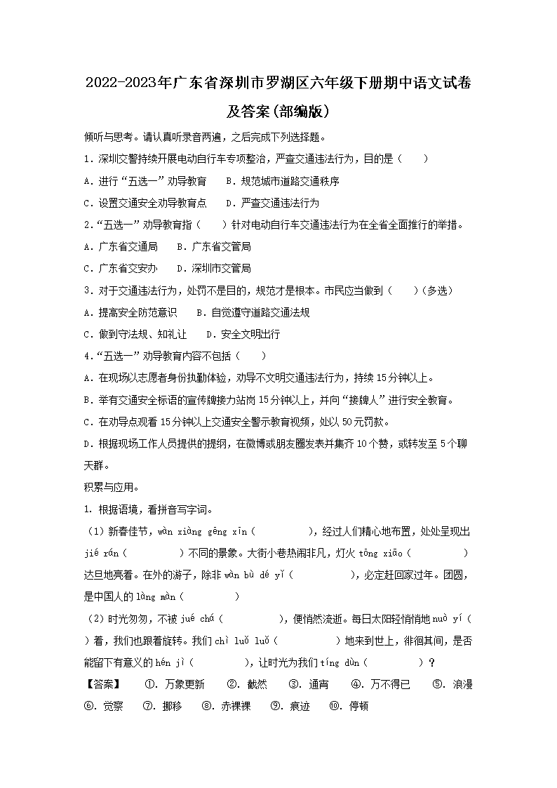 2022-2023年廣東省深圳市羅湖區(qū)六年級(jí)下冊(cè)期中語(yǔ)文試卷及答案(部編版)(Word版)