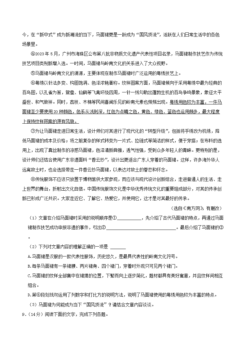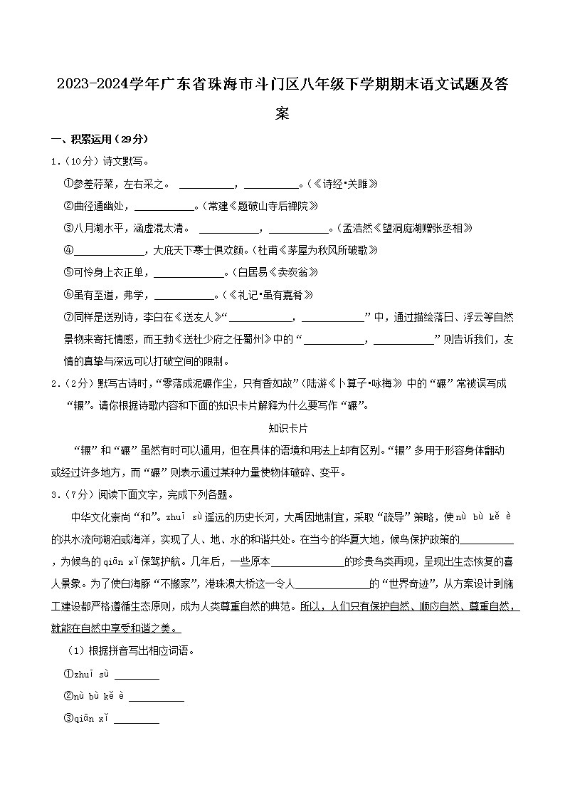 【文檔名稱】 2023-2024學年廣東省珠海市斗門區(qū)八年級下學期期末語文試題及答案(Word版).doc