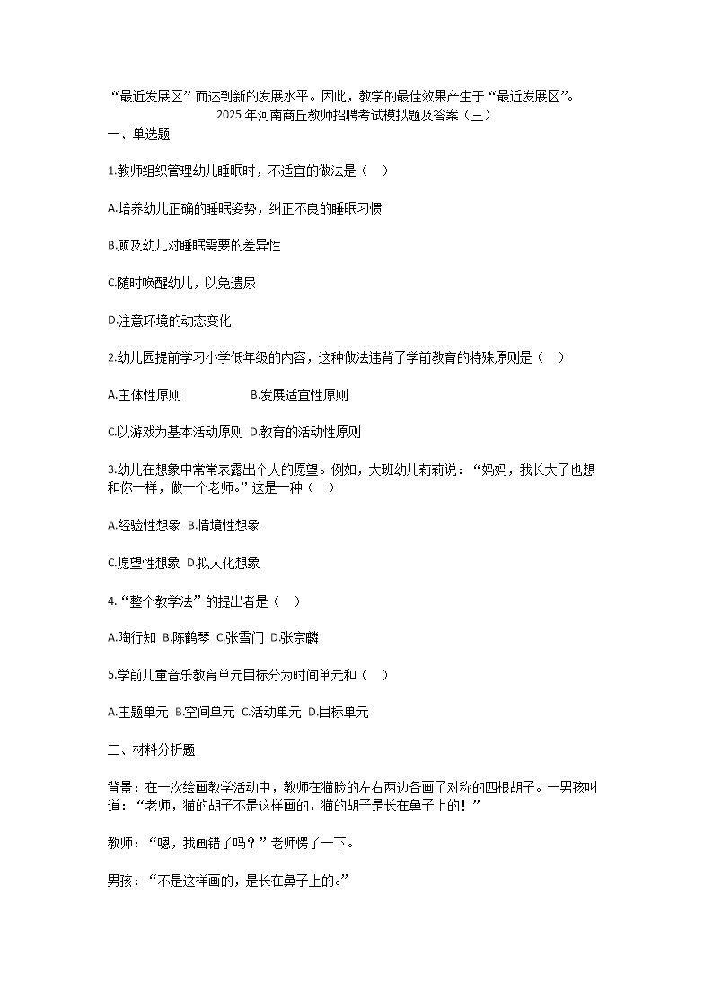【文檔預(yù)覽】 無憂考網(wǎng)整理發(fā)布2025年河南商丘教師招聘考試模擬試題及答案(Word版),前五頁預(yù)覽如下: