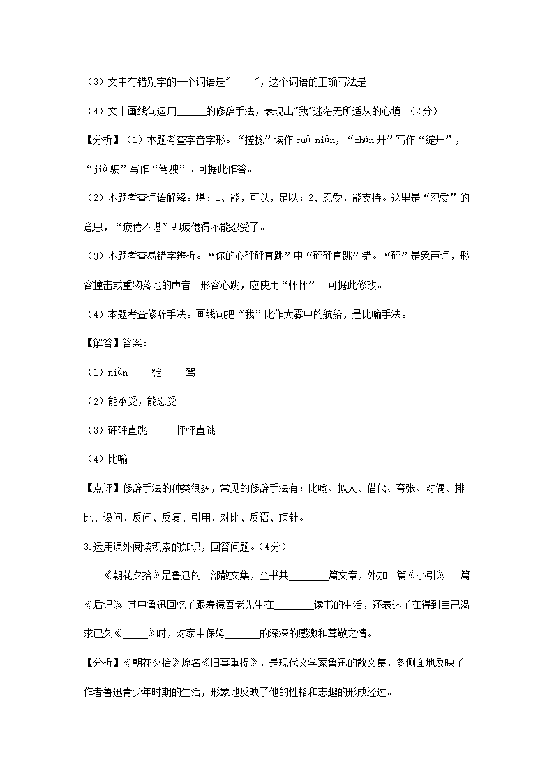 - 2021-2022學(xué)年重慶沙坪壩區(qū)七年級(jí)下冊(cè)語(yǔ)文第一次月考試卷及答案
