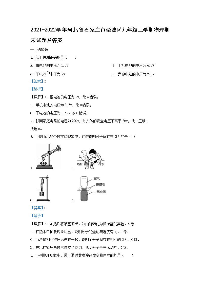 【文檔預(yù)覽】 無憂考網(wǎng)整理發(fā)布2021-2022學(xué)年河北省石家莊市欒城區(qū)九年級上學(xué)期物理期末試題及答案(Word版),前五頁預(yù)覽如下: