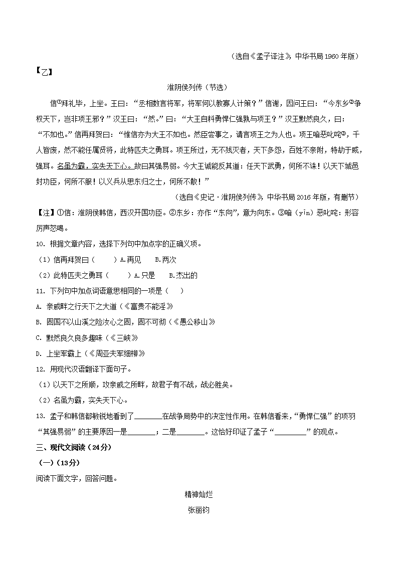 - 2022-2023學(xué)年江蘇省南京市江寧區(qū)八年級上學(xué)期期末語文試題及答案