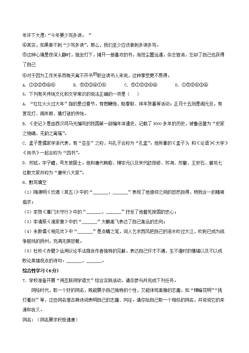 - 2023-2024學(xué)年重慶市渝北區(qū)八年級下學(xué)期期末語文試題及答案