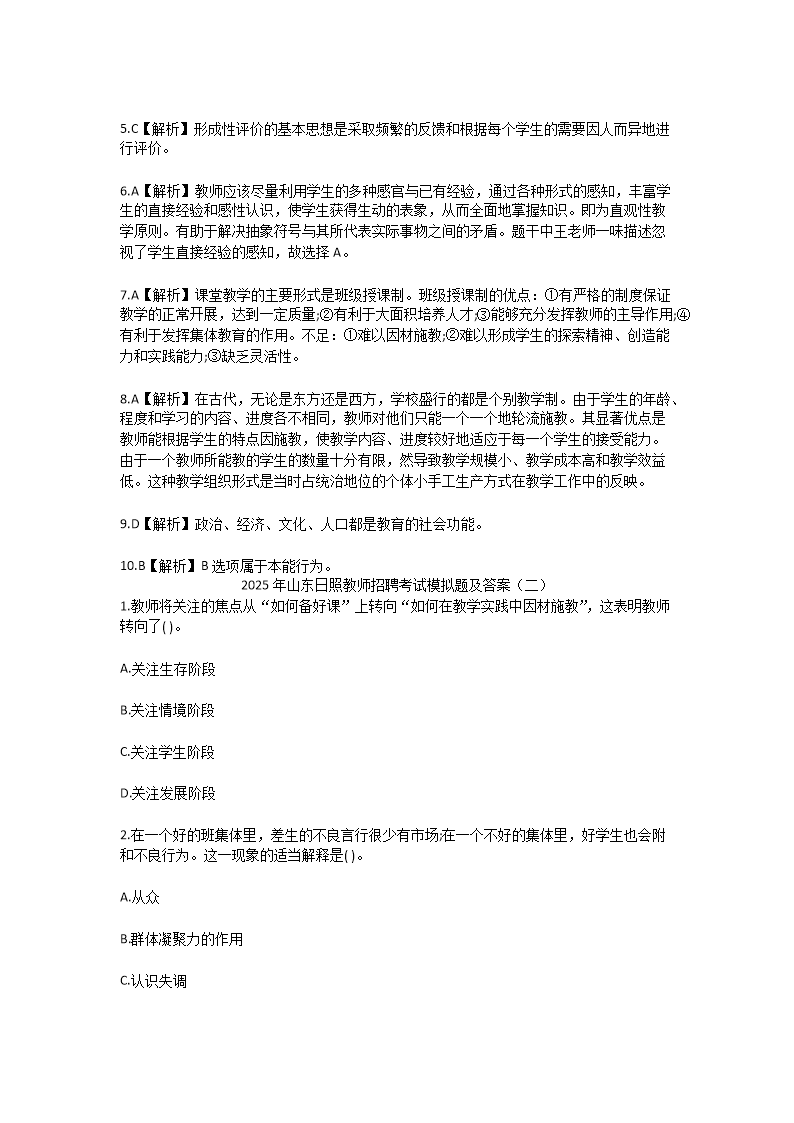 【文檔名稱】 2025年山東日照教師招聘考試模擬試題及答案(Word版).doc