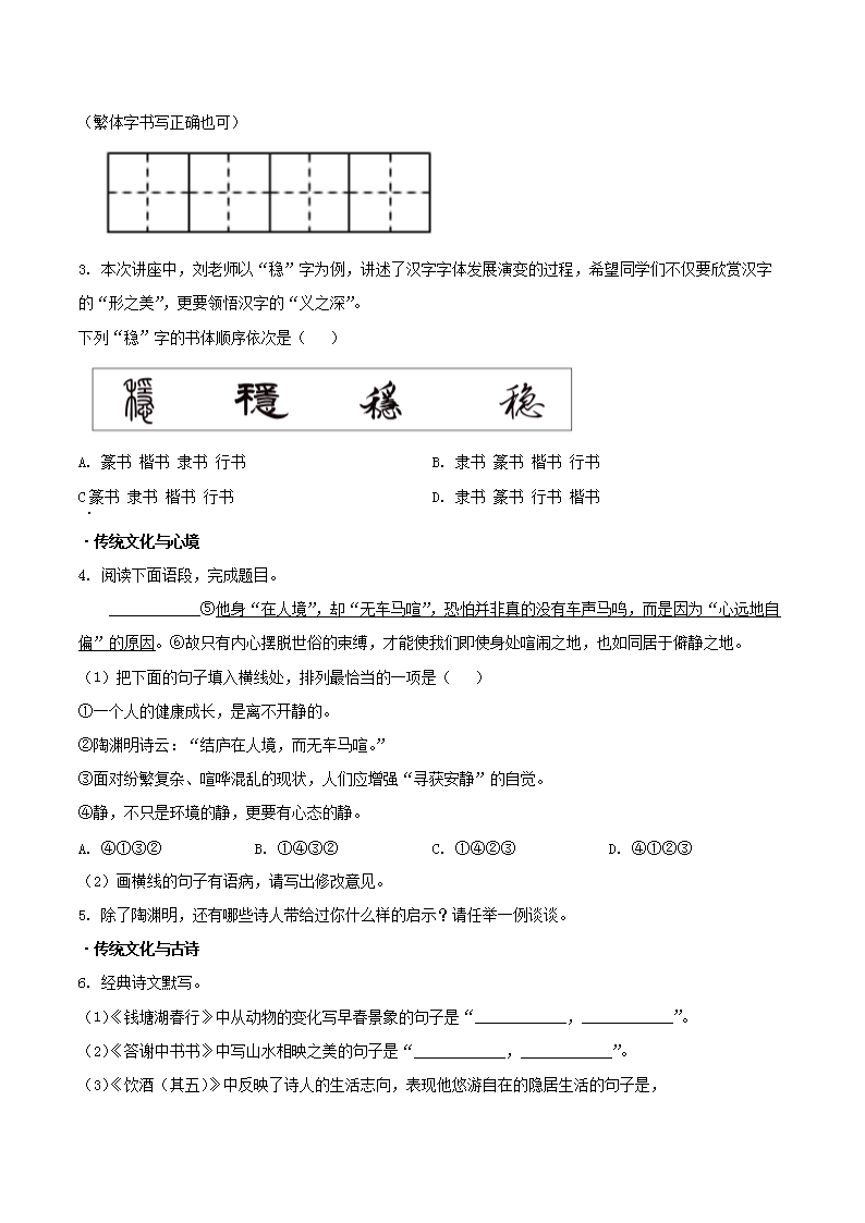 - 2023-2024學(xué)年甘肅省定西市安定區(qū)八年級上學(xué)期期末語文試題及答案