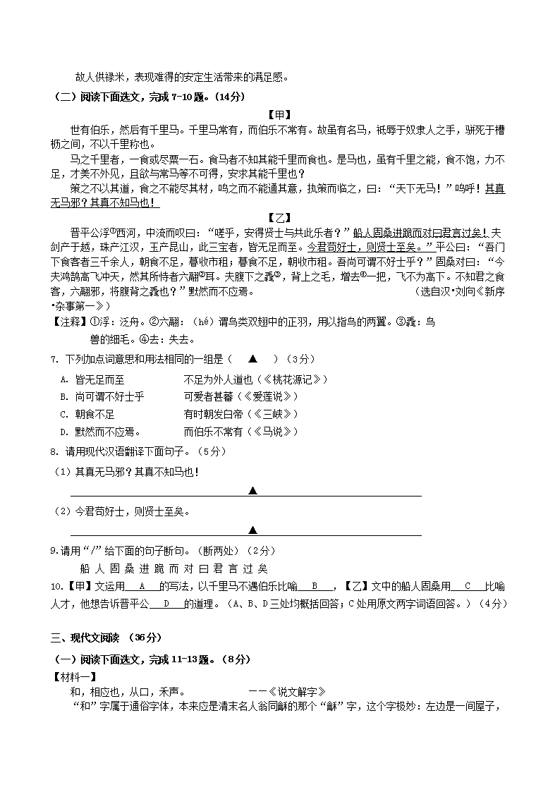 - 2022-2023學(xué)年江蘇省南京市江寧區(qū)八年級上學(xué)期期末語文試題及答案