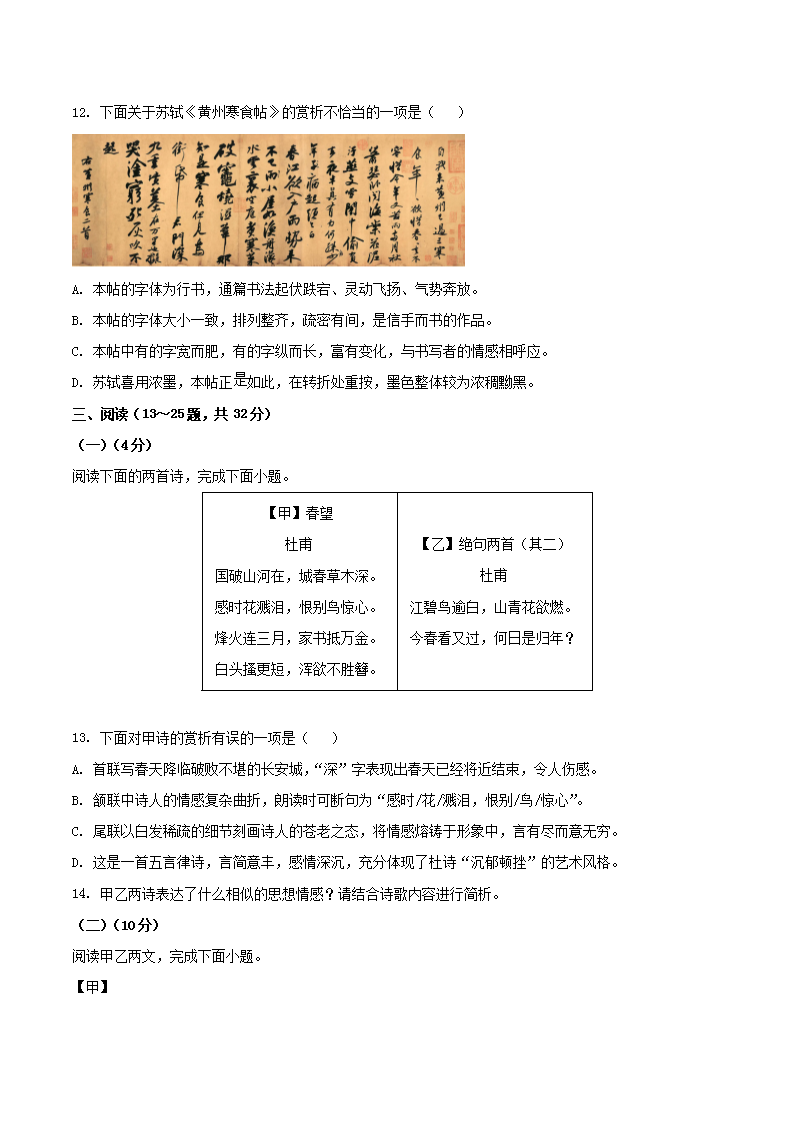 - 2022-2023學(xué)年四川省成都市簡陽市八年級(jí)上學(xué)期期末語文試題及答案
