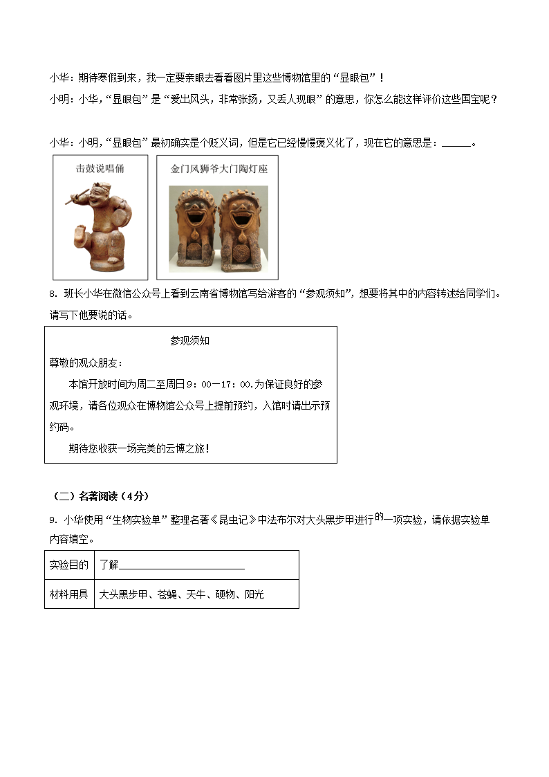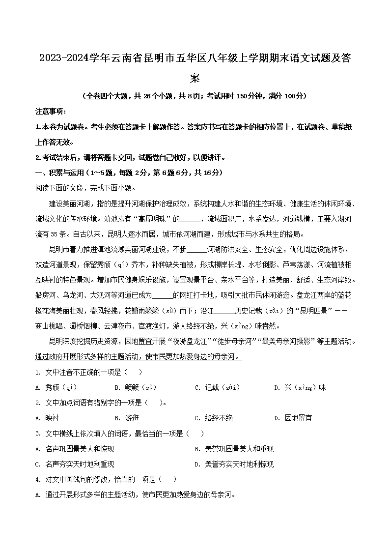2023-2024學(xué)年云南省昆明市五華區(qū)八年級(jí)上學(xué)期期末語文試題及答案(Word版)