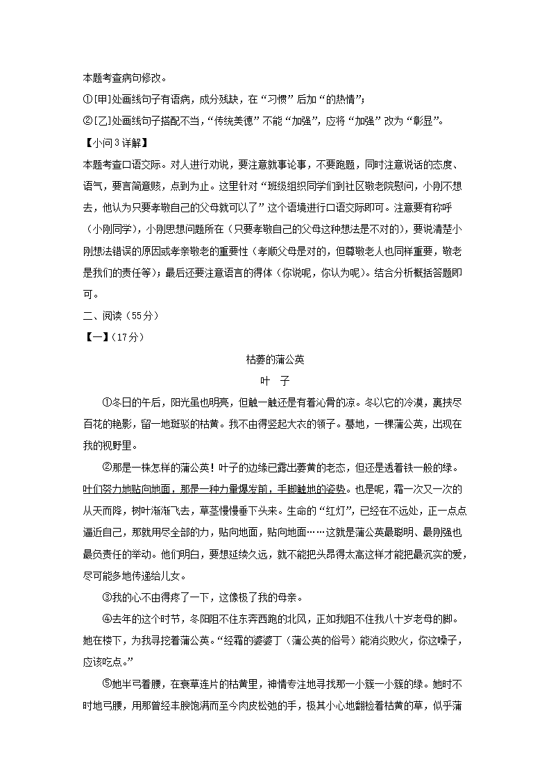- 2021-2022學年安徽合肥廬陽區(qū)七年級下冊語文期末試卷及答案