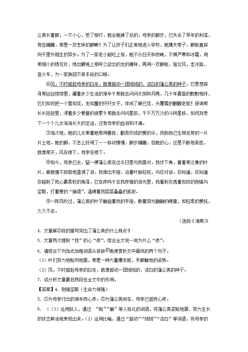 - 2021-2022學年安徽合肥瑤海區(qū)七年級下冊語文期末試卷及答案
