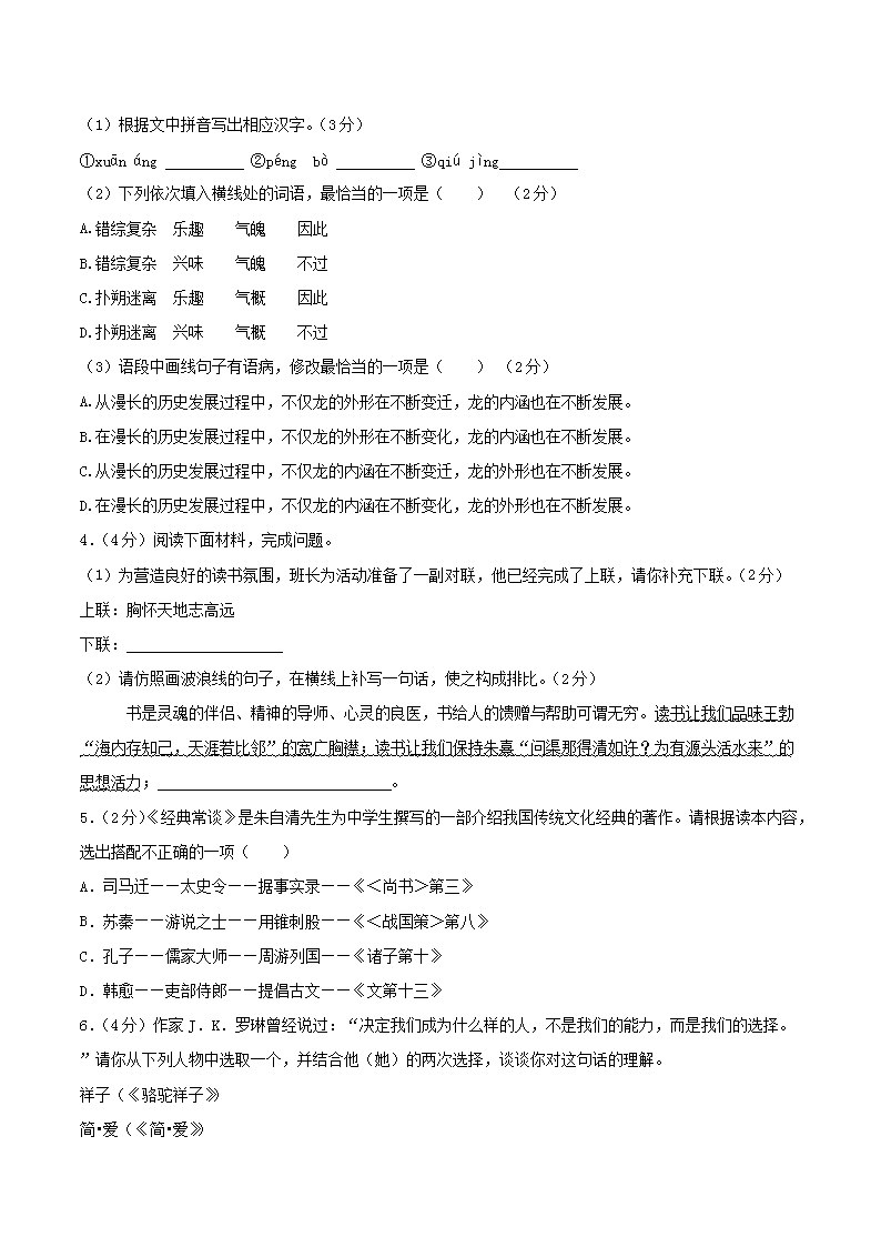 - 2023-2024學(xué)年安徽省淮南市壽縣八年級下學(xué)期期末語文試題及答案