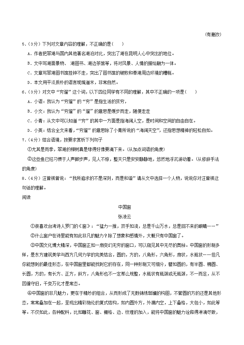 - 2023-2024學(xué)年云南省昆明市五華區(qū)八年級上學(xué)期期末語文試題及答案
