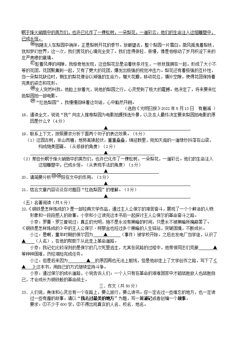 【文檔預(yù)覽】 無憂考網(wǎng)整理發(fā)布2023-2024學(xué)年江蘇省句容市八年級下學(xué)期期末語文試題及答案(Word版),前五頁預(yù)覽如下: