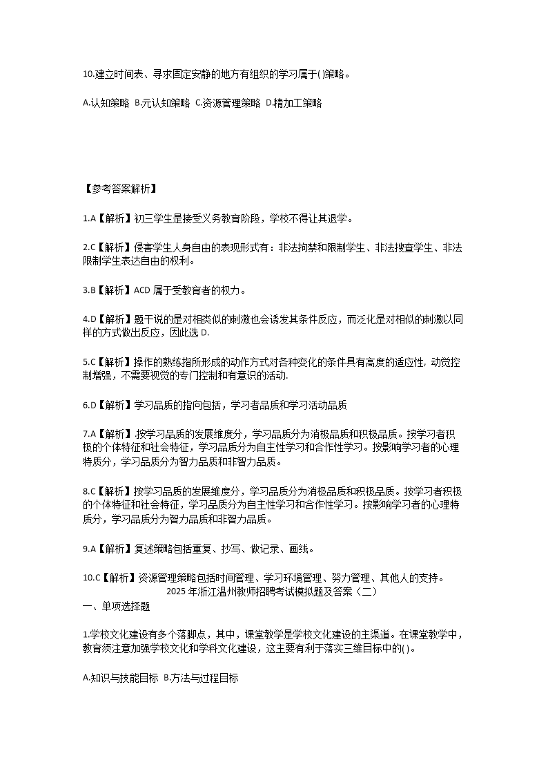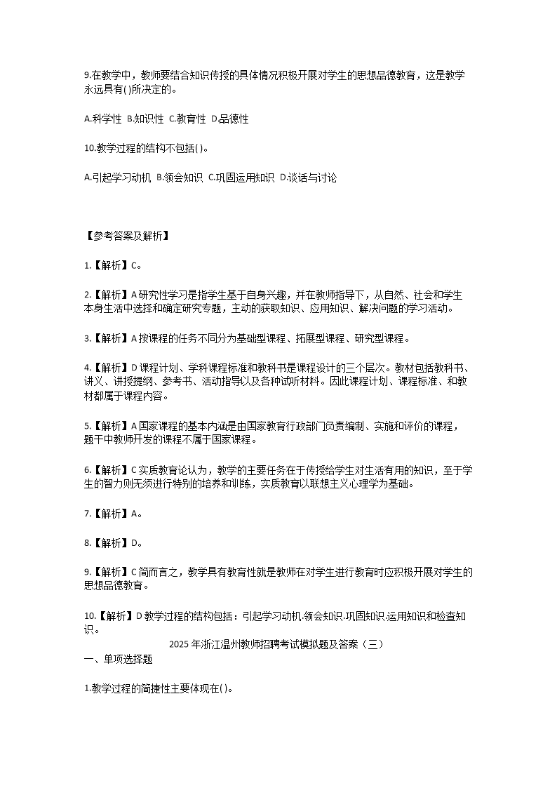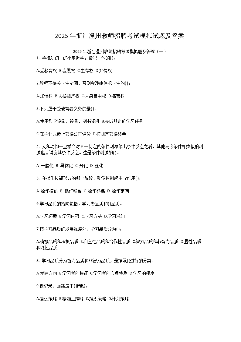 【文檔名稱】 2025年浙江溫州教師招聘考試模擬試題及答案(Word版).doc