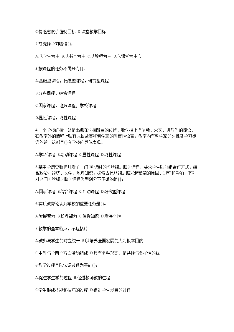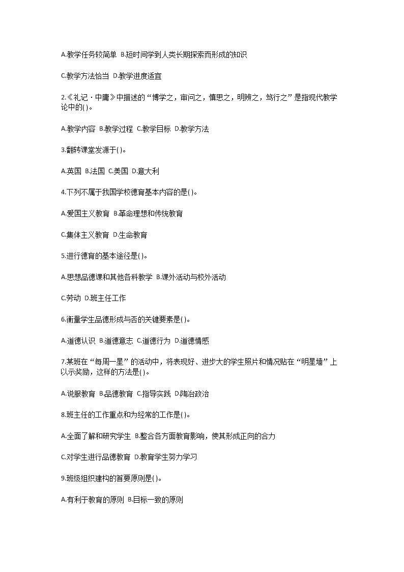 - 2019年浙江教師招聘考試中學(xué)教育基礎(chǔ)知識(shí)真題及答案
