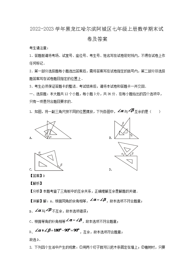 2022-2023學(xué)年黑龍江哈爾濱阿城區(qū)七年級(jí)上冊數(shù)學(xué)期末試卷及答案(Word版)