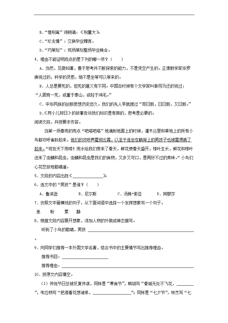 【文檔預(yù)覽】 無憂考網(wǎng)整理發(fā)布2023年廣東省廣州市黃埔區(qū)小升初語文試卷及答案(Word版),前五頁預(yù)覽如下: