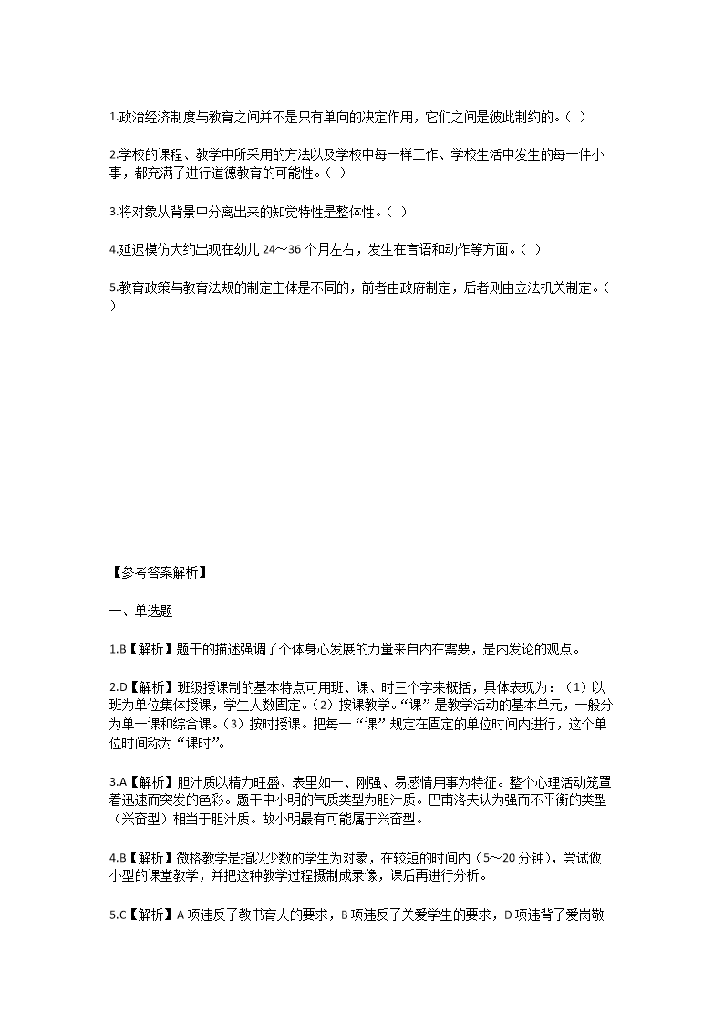 - 2016年廣東中山市教育系統(tǒng)教師招聘考試教育理論真題及答案