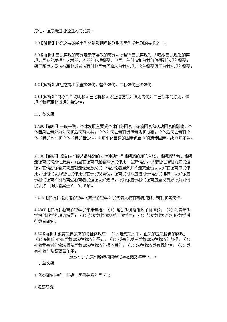 【文檔預(yù)覽】 無憂考網(wǎng)整理發(fā)布2025年廣東惠州教師招聘考試模擬試題及答案(Word版),前五頁預(yù)覽如下: