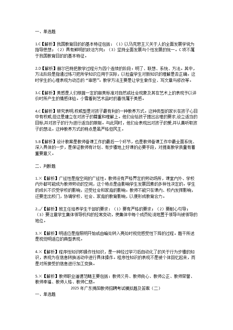 【文檔名稱】 2025年廣東揭陽(yáng)教師招聘考試模擬試題及答案(Word版).doc