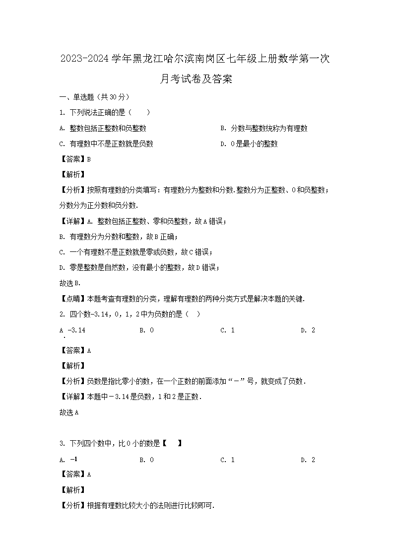 時(shí)間:2025-04-27 17:47:00 來(lái)源:無(wú)憂考網(wǎng) [字體:小 中 大]【文檔名稱】 2023-2024學(xué)年黑龍江哈爾濱南崗區(qū)七年級(jí)上冊(cè)數(shù)學(xué)第一次月考試卷及答案(Word版).doc