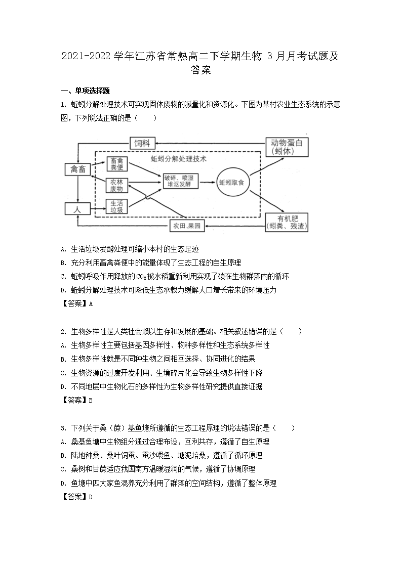 【文檔名稱】 2021-2022學(xué)年江蘇省常熟高二下學(xué)期生物3月月考試題及答案(Word版).doc