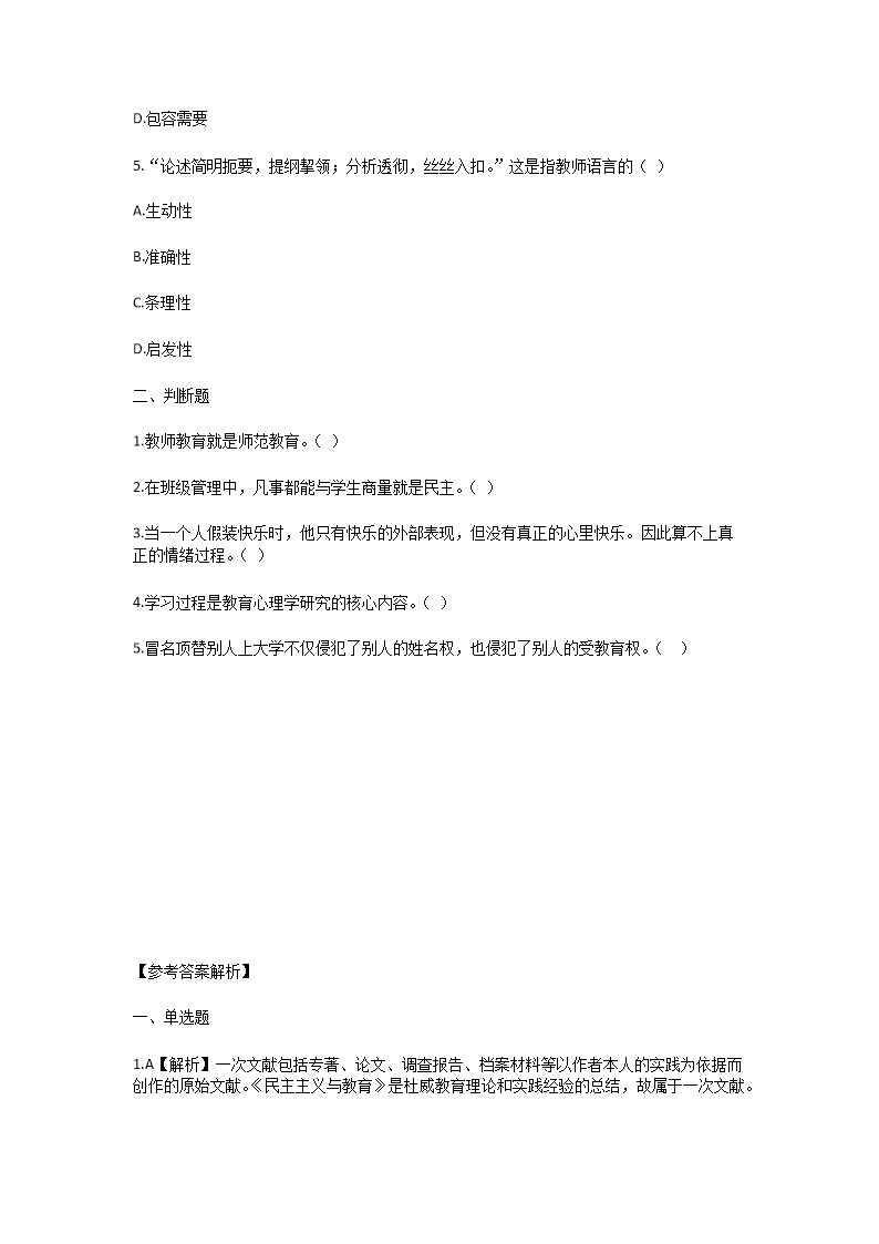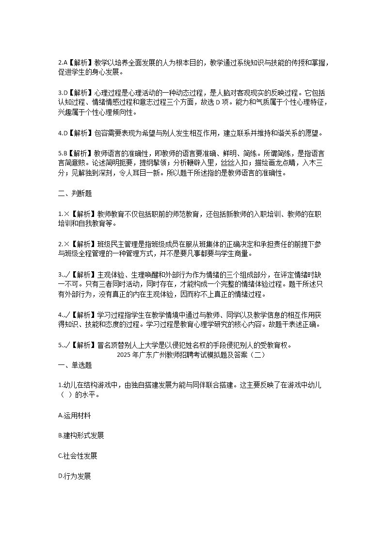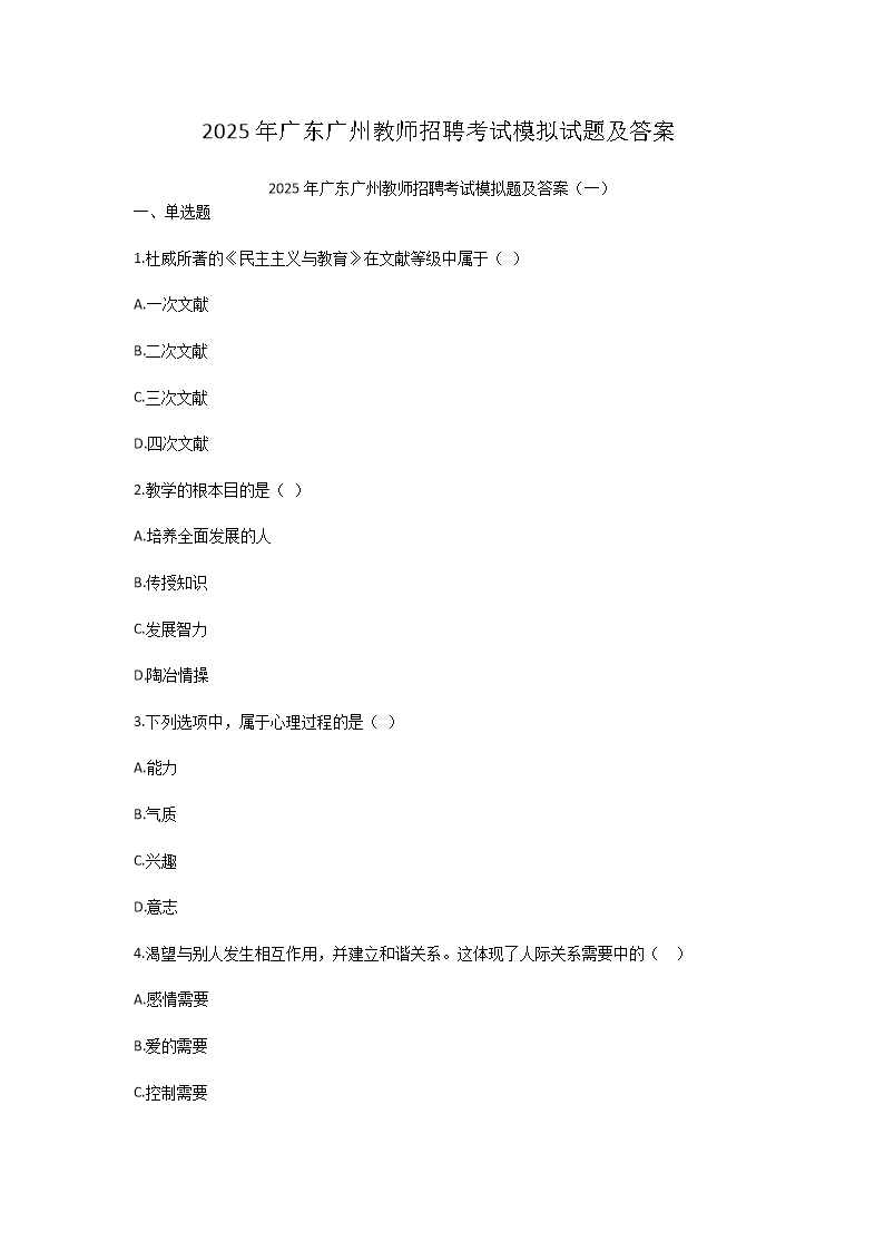【文檔名稱】 2025年廣東廣州教師招聘考試模擬試題及答案(Word版).doc
