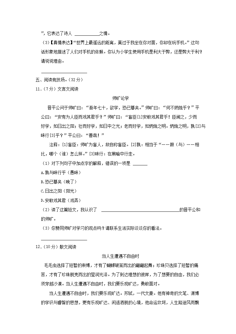 - 2021-2022年廣東省中山市六年級下冊期末語文試卷及答案