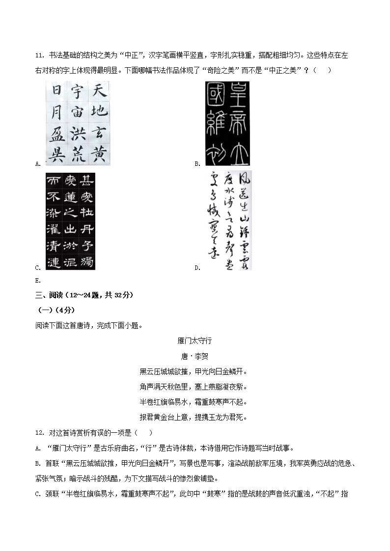 - 2023-2024學年四川省德陽市旌陽區(qū)八年級上學期期末語文試題及答案