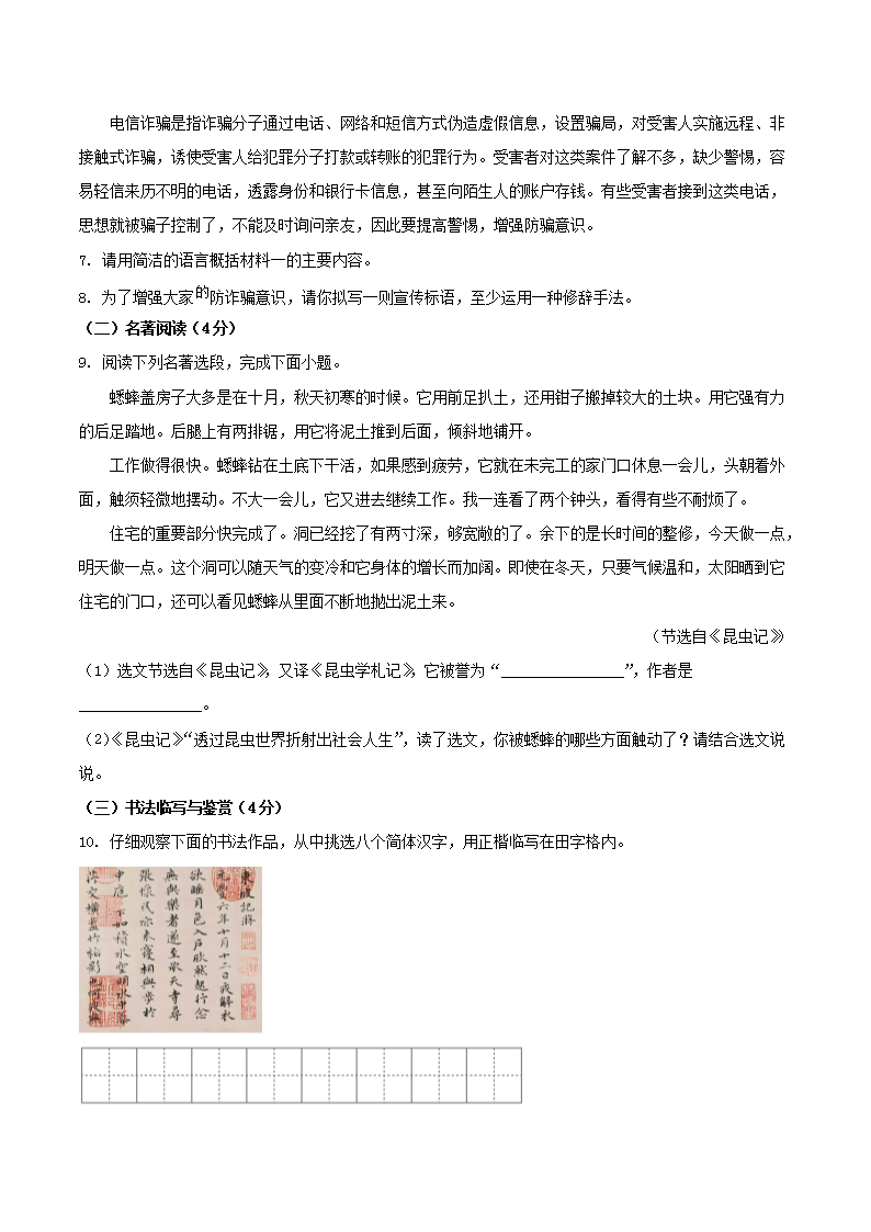 - 2023-2024學年云南省昆明市官渡區(qū)八年級上學期期末語文試題及答案