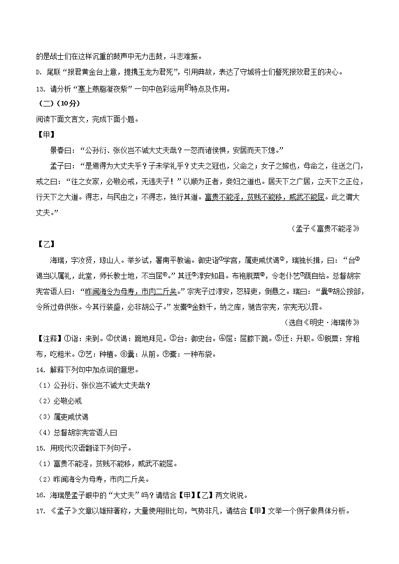- 2023-2024學年云南省昆明市九縣區(qū)八年級上學期期末語文試題及答案