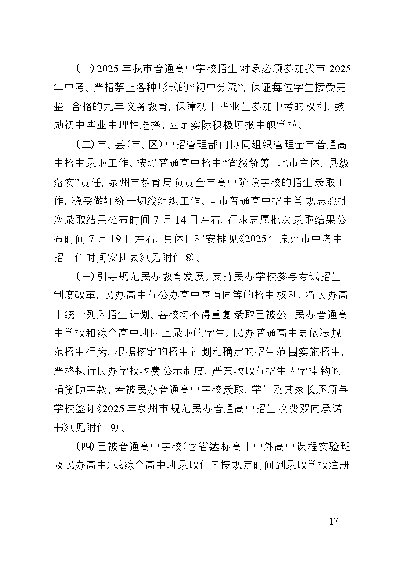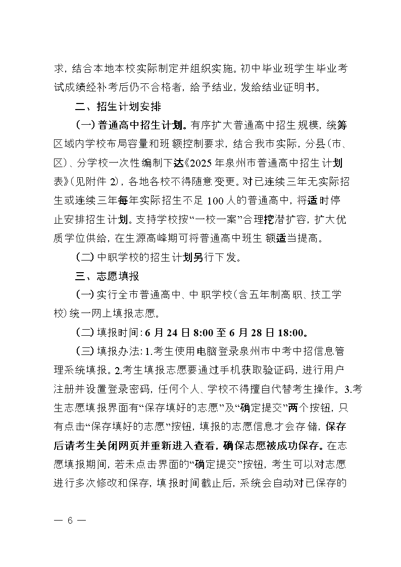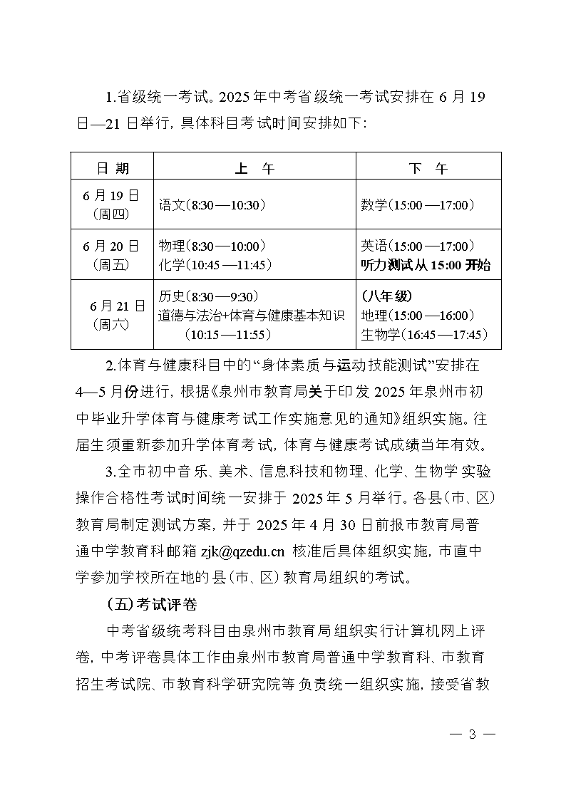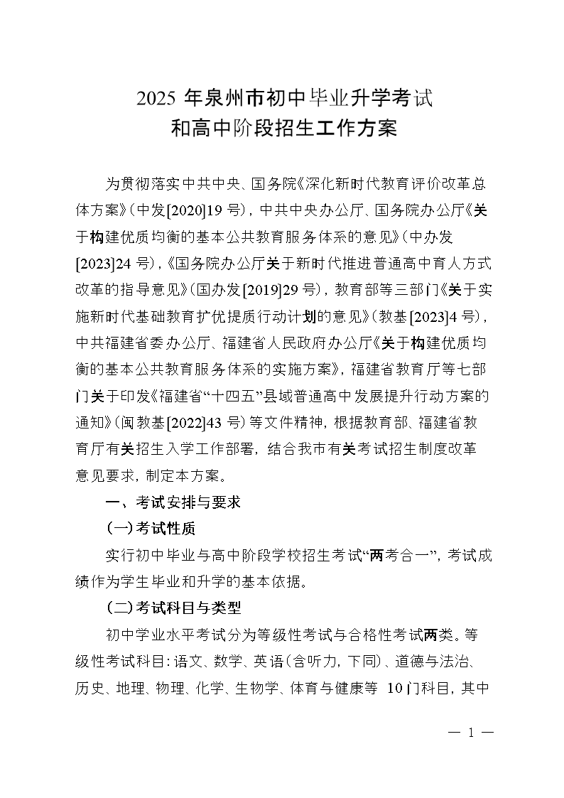 2025年泉州市初中畢業(yè)升學(xué)考試和高中階段招生工作方案