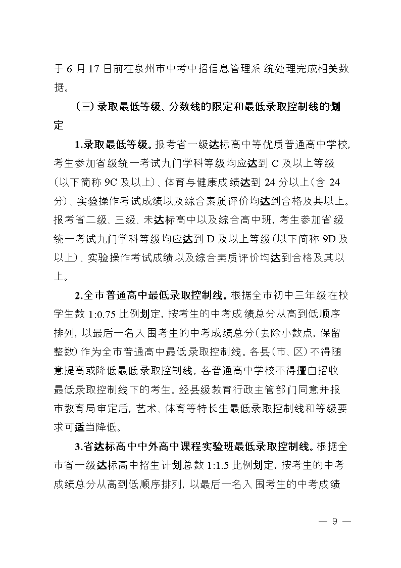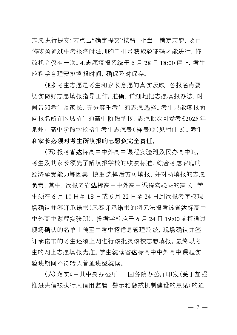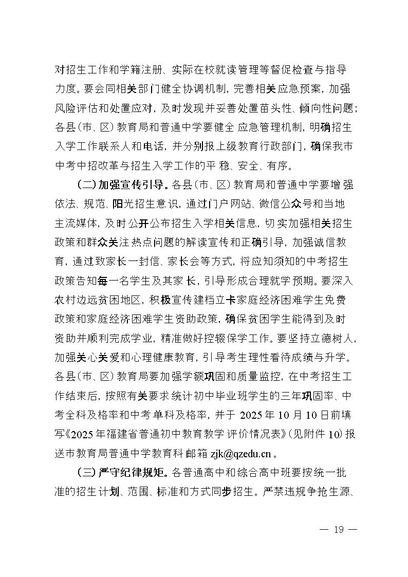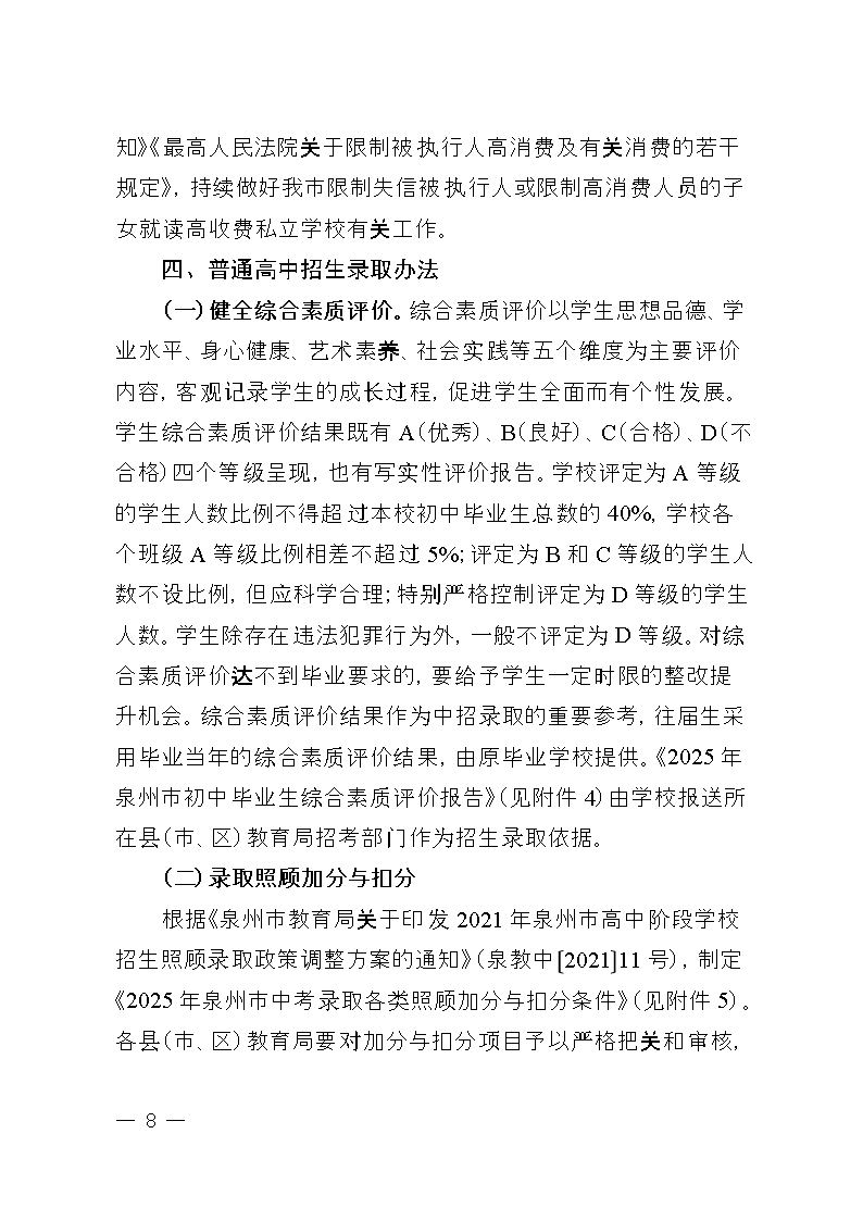 2025年泉州市初中畢業(yè)升學(xué)考試和高中階段招生工作方案