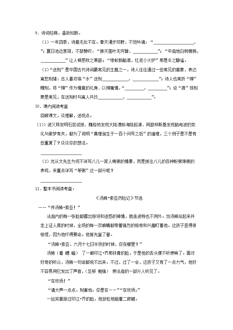 - 2021-2022年廣東省深圳市南山區(qū)六年級下冊期末語文試題及答案