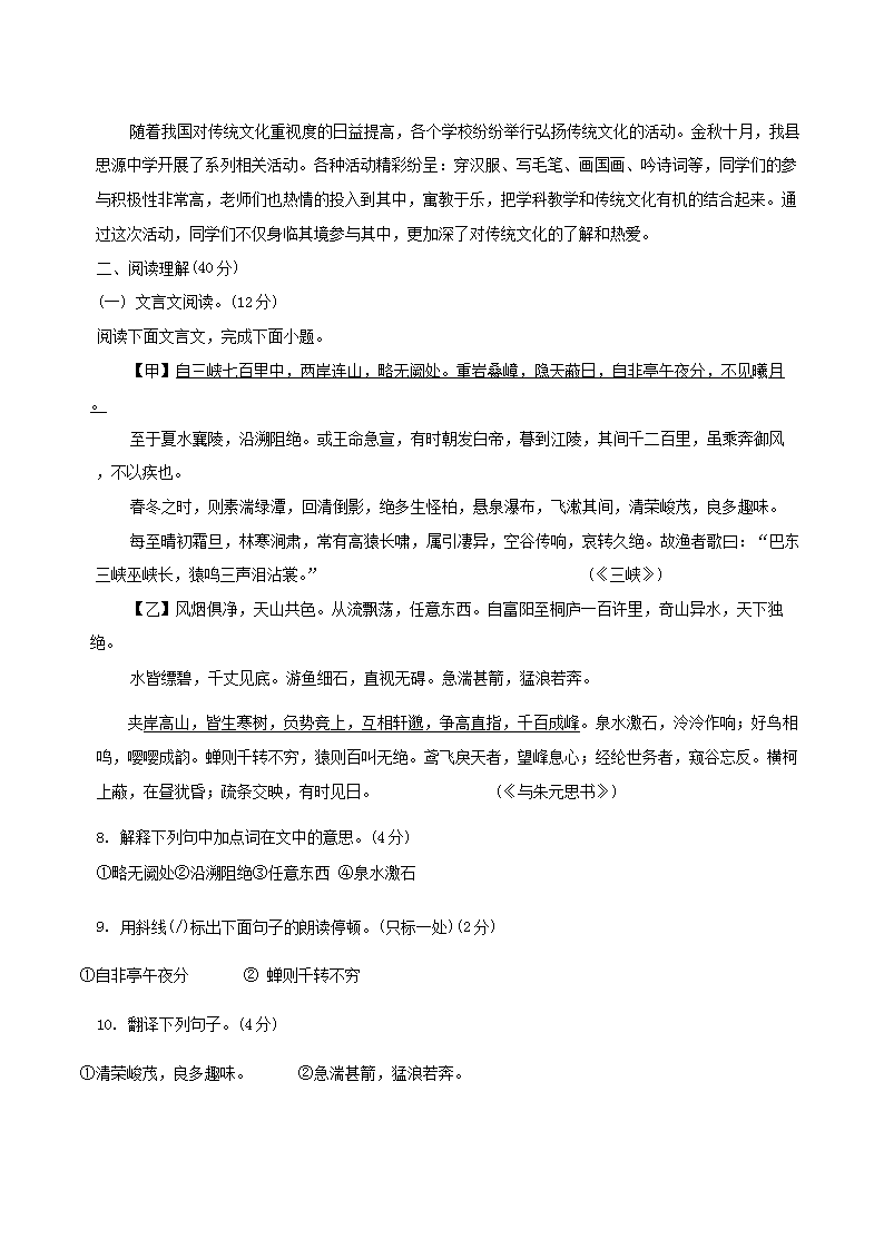 時(shí)間:2025-05-08 17:24:00 來(lái)源:無(wú)憂(yōu)考網(wǎng) [字體:小 中 大]【文檔名稱(chēng)】 2023-2024學(xué)年寧夏中衛(wèi)市中寧縣八年級(jí)上學(xué)期期末語(yǔ)文試題及答案(Word版).doc