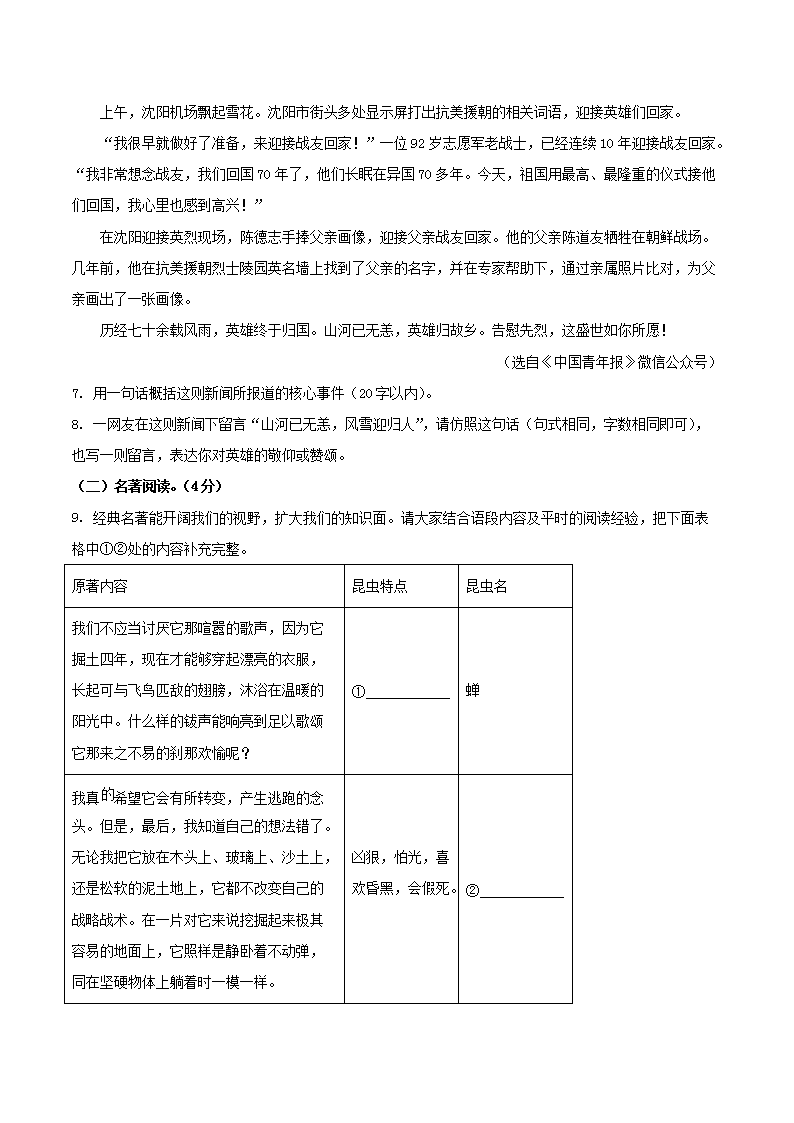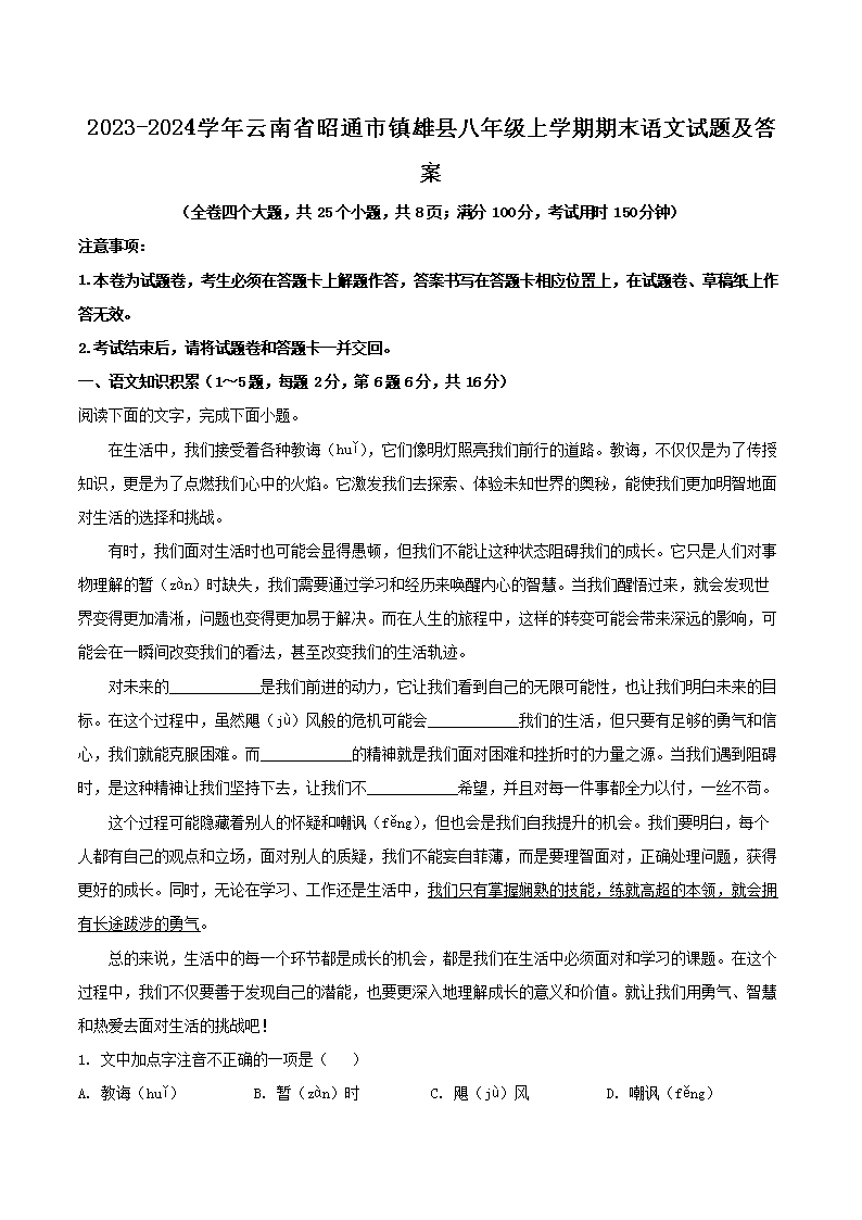 2023-2024學(xué)年云南省昭通市鎮(zhèn)雄縣八年級上學(xué)期期末語文試題及答案(Word版)