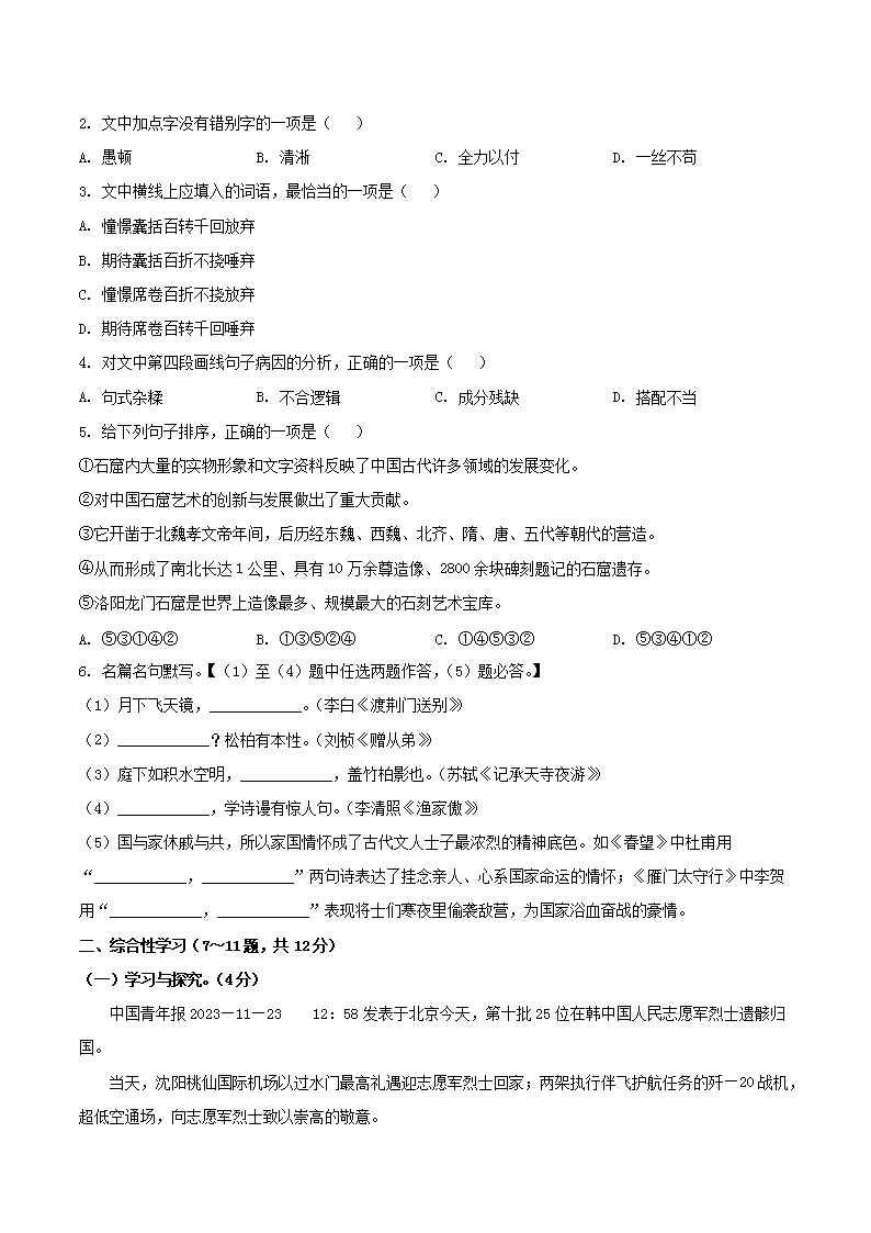 時間:2025-05-09 17:06:00 來源:無憂考網(wǎng) [字體:小 中 大]【文檔名稱】 2023-2024學(xué)年云南省昭通市鎮(zhèn)雄縣八年級上學(xué)期期末語文試題及答案(Word版).doc