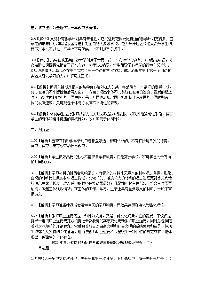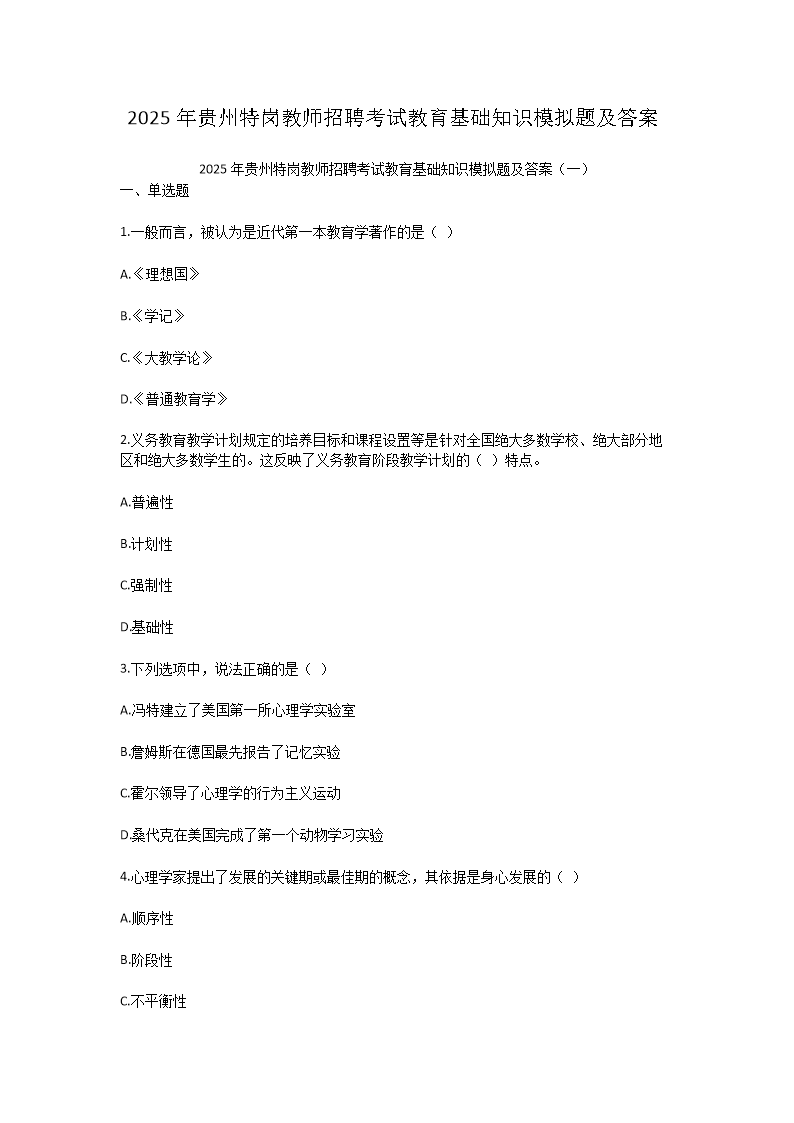 【文檔預(yù)覽】 無憂考網(wǎng)整理發(fā)布2025年貴州特崗教師招聘考試教育基礎(chǔ)知識模擬題及答案(Word版),前五頁預(yù)覽如下: