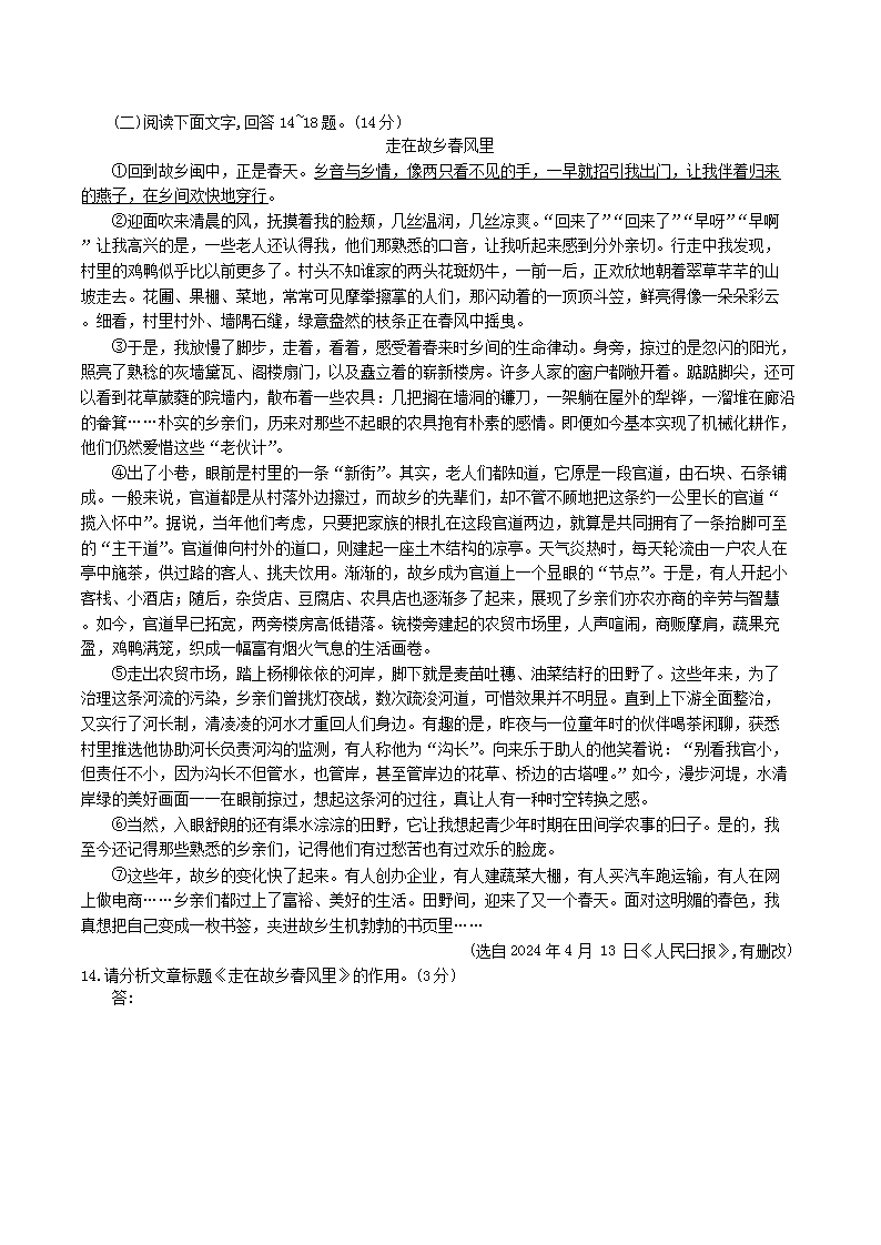 時(shí)間:2025-05-12 14:24:00 來源:無憂考網(wǎng) [字體:小 中 大]【文檔名稱】 2023-2024學(xué)年河北省唐山市灤州市八年級(jí)下學(xué)期期末語文試題及答案(Word版).doc