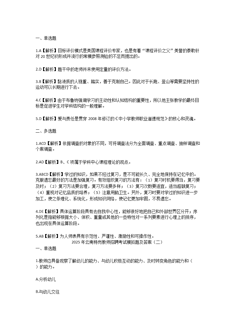 【文檔預(yù)覽】 無(wú)憂考網(wǎng)整理發(fā)布2025年云南特崗教師招聘考試模擬題及答案(Word版),前五頁(yè)預(yù)覽如下: