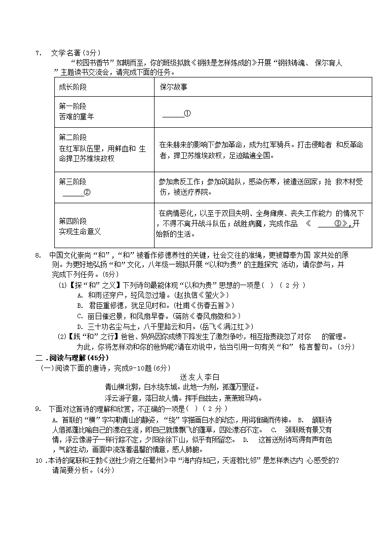 時間:2025-05-13 16:53:00 來源:無憂考網(wǎng) [字體:小 中 大]【文檔名稱】 2023-2024學(xué)年山東省棗莊市嶧城區(qū)八年級下學(xué)期期末語文試題及答案(Word版).doc