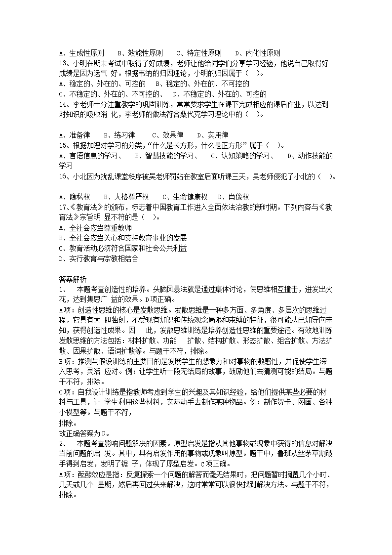 - 2016年9月4日廣東潮州潮安區(qū)教育系統(tǒng)招聘考試教育教學通用能力測試真題及答案