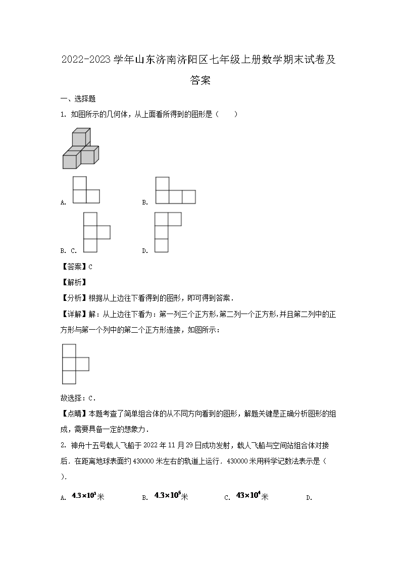 2022-2023學(xué)年山東濟南濟陽區(qū)七年級上冊數(shù)學(xué)期末試卷及答案(Word版)